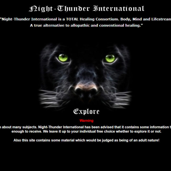 Night-Thunder International is a TOTAL Healing Consortium. Body, Mind and Lifestream.